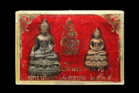 พระกริ่งอธิบดี-พระชัยอธิบดี วัดชัยพฤกษมาลาราชวรวิหาร ปี 2525 รุ่นแรกกรมอัยการ No.1342 เนื้อนวโลหะ พร้อมกล่อง สวยครับ