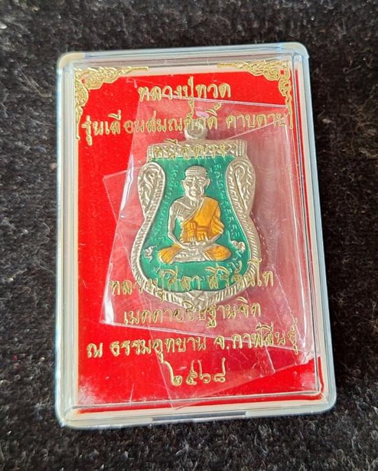 วัดใจ หลวงปู่ทวด หลวงปู่ศิลา เมตตาอธิษฐานจิต รุ่นเลื่อนสมณศักดิ์ เหนือดวง เนื้ออัลปาก้า ลงยา No.66 |