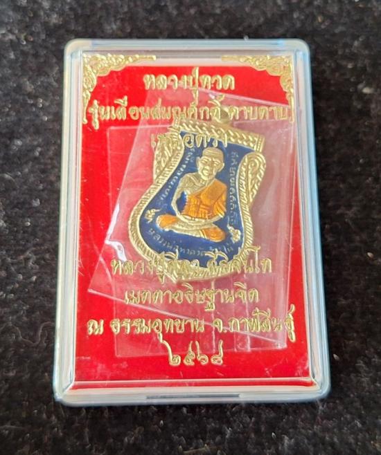 วัดใจ หลวงปู่ทวด หลวงปู่ศิลา เมตตาอธิษฐานจิต รุ่นเลื่อนสมณศักดิ์ เหนือดวง เนื้อทองทิพย์ ลงยา No.4 |