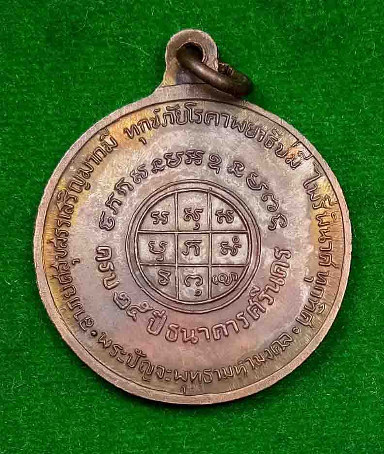 เหรียญพระปัญจะพุทธามหามงคล (ไพรีพินาศทุกทิศ) เนื้อทองแดง อนุสรณ์ครบรอบ 25 ปี จัดสร้างโดยธนาคารศรีนคร พิธีพุทธาภิเษกยิ่งใหญ่แห่งปี พ.ศ.2518 รวมพระอาจารย์สายกัมมัฏฐานร่วมสมัย.........อาทิ