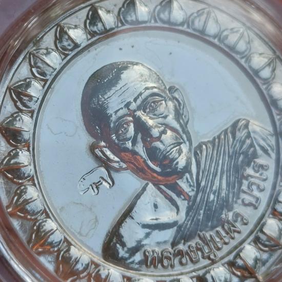 เหรียญมหาลาภ หลวงปู่แผ้ว ปวโร วัดหรองพงนก อ.กำแพงแสน จ.นครปฐม ปี2554 เนื้อกะไหล่เงิน ตอกโค๊ตหมู เลี่ยมพร้อมใช้
