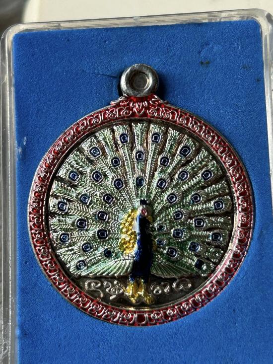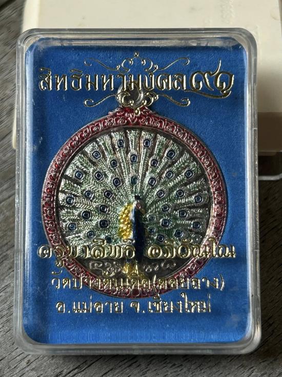 วะดใจ..100 เหรียญนกยูงทองเรียกทรัพย์ เนื้อทองขาวลงยาสี รุ่น สิทธมหามงคล ๙๑ ครูบาสิทธิ วัดปางต้นเดื่อ