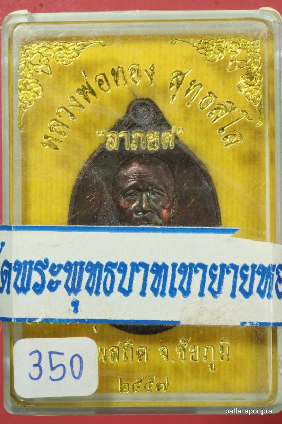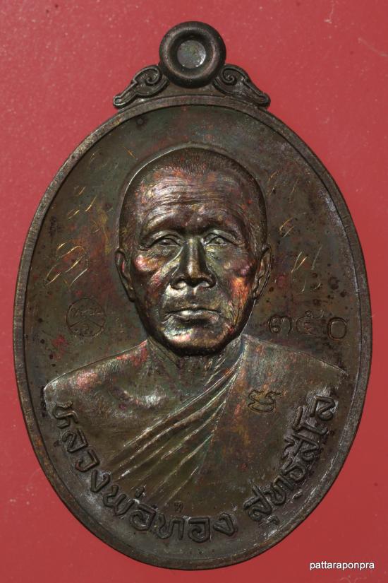 เหรียญหลวงพ่อทอง รุ่นลาภยศ ปี 2557 เนื้อทองแดงมันปู มีจารหลวงพ่อ หมายเลข 350 |