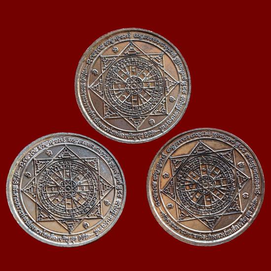 ชุด 3 องค์...เหรียญสุริยันต์ - จันทราเทพ เนื้ออัลปาก้า ปี 2556 หลวงปู่สิงห์ วัดบ้านป่าตะแบง จ.นครราชสีมา พร้อมซองรูปเดิมจากวัด สภาพพระตามรูปที่ลงทุกประการ (ขนาดประมาณ 3.1 ซม.)