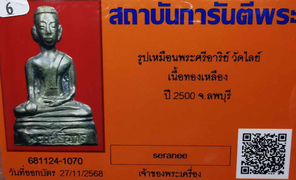 พระกริ่งรูปเหมือนพระศรีอาริย์ วัดไลย์ รุ่นแรก เนื้อทองเหลือง กริ่งดัง ปี2500 จ.ลพบุรี + บัตรG-pra สภาพเดิมค่ะ สภาพตามรูปทุกประการค่ะ