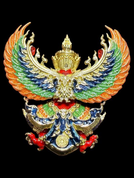 รายละเอียด ครุฑพุทธศิลป์รุ่นแรก หลวงพ่อโชคชัย วัดน้ำดิบ จังหวัดกำแพงเพชร รายการแจกศูนย์จองเนื้อมหาชนวนเพ้นสีแดง เลขโค๊ต 234 (เรียง) พร้อมกล่องกำมะหยี่อย่างดี