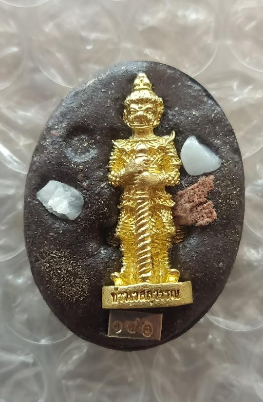 ล็อกเก็ตฉากทอง ด้านหลังฝังท้าวเวสสุวรรณ พลอยเสก จีวร ข้าวสารหิน