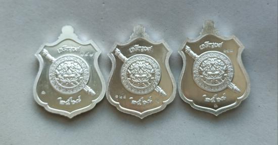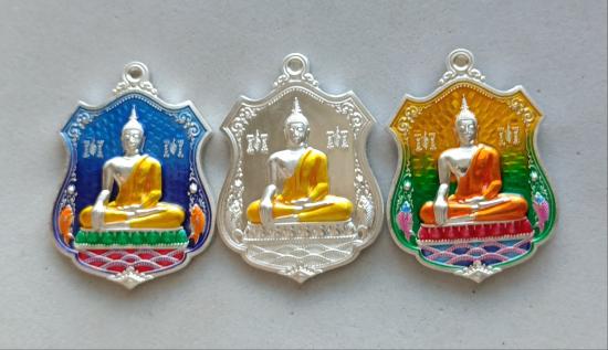 วัดใจเคาะเดียวแดงจ้า เหรียญหลวงพ่อโต วัดบางพลีใหญ่ใน กรมตำรวจ68 เนื้อชุบเงินลงยา3เหรียญ เคาะเดียวแดงจ้า