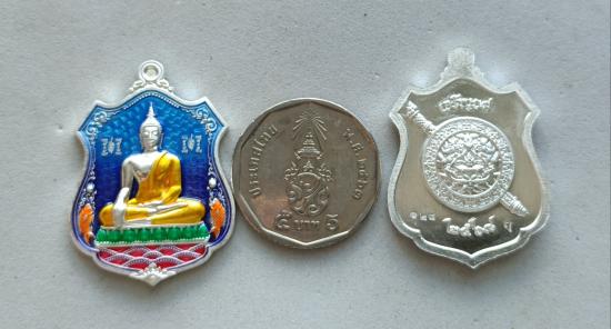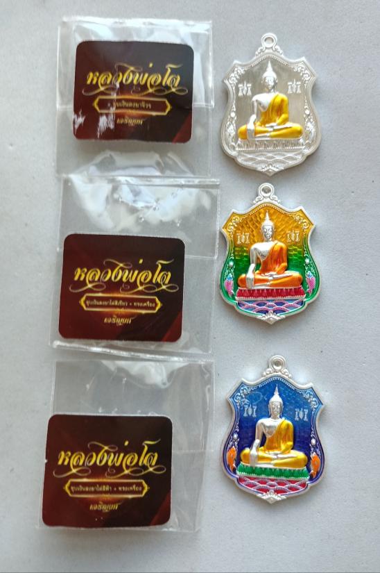 ชื่อพระเครื่อง วัดใจเคาะเดียวแดงจ้า เหรียญหลวงพ่อโต วัดบางพลีใหญ่ใน กรมตำรวจ68 เนื้อชุบเงินลงยา3เหรียญ เคาะเดียวแดงจ้า