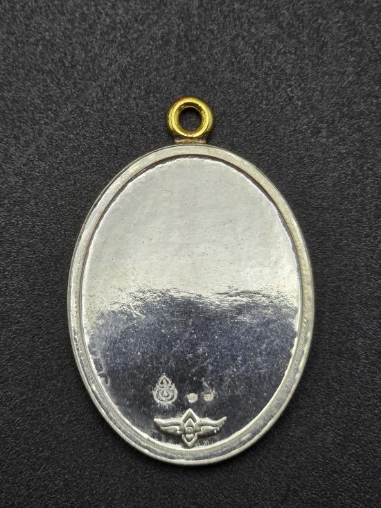 พระอาจารย์เจา วัดหนองราชวัตร จ.สุพรรณบุรี ที่รฤกฉลองอุโบสถ เหรียญไข่นั่งเต็มองค์ เนื้อเงินหน้ากากทองคำเต็มแผ่นห่วงเชื่อมทองคำ หลังเรียบ ขอบกระบอก หมายเลข.17 โซนวันเกิดจัดสร้าง 99 เหรียญ ปี2568