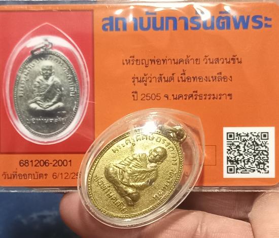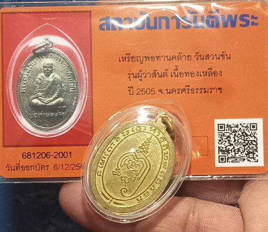 เคาะเดียวแดง++เหรียญพ่อท่านคล้าย วันสวนขัน รุ่นผู้ว่าสันต์ เนื้อทองเหลือง ปี 2505 จ.นครศรีธรรมราช พร้อมบัตรรับรองพระแท้ครับ