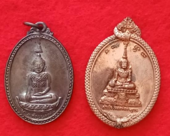 เคาะเดียว 2 เหรียญ เหรียญพระแก้วบุษราคัม วัดศรีอุบลรัตนาราม เนื้อทองแดงรมดำ พิธีใหญ่ ปี2519 และเหรียญพระศรีอาริยเมตไตรย์ หลังหลวงปู่ดู่หลวงตาม้า เนื้อทองแดง มีรอยจารหลวงตาม้า
