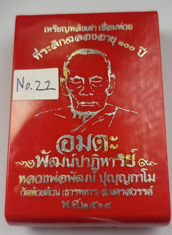 "วัดใจ"(เลขคู่สวย เบอร์ 22) เหรียญห่วงเชื่อมหลังเต่า รุ่น"อมตะพัฒน์ปาฏิหาริย์" หลวงพ่อพัฒน์ วัดห้วยด้วน เนื้อเงินลงยาขุ้ยพื้นสีเหลือง เบอร์ 22 พร้อมกล่องเดิมครับ (น้ำหนักเหรียญ 20.64กรัม)