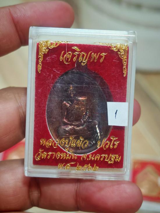 เหรียญเจริญพรบน หลวงปูแผ้ว ปวโร เนื้อทองแดง สภาพสวยครับ พร้อมกล่อง (1)