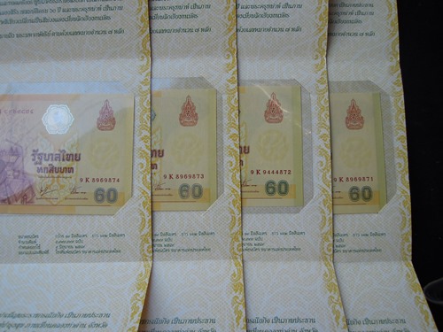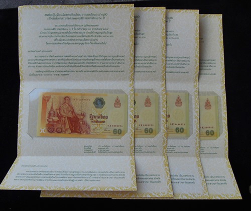 ธนบัตร 60 บาท ครองราชย์ ครบ 60 ปี จำนวน 4 ใบ เลขเรียงกัน