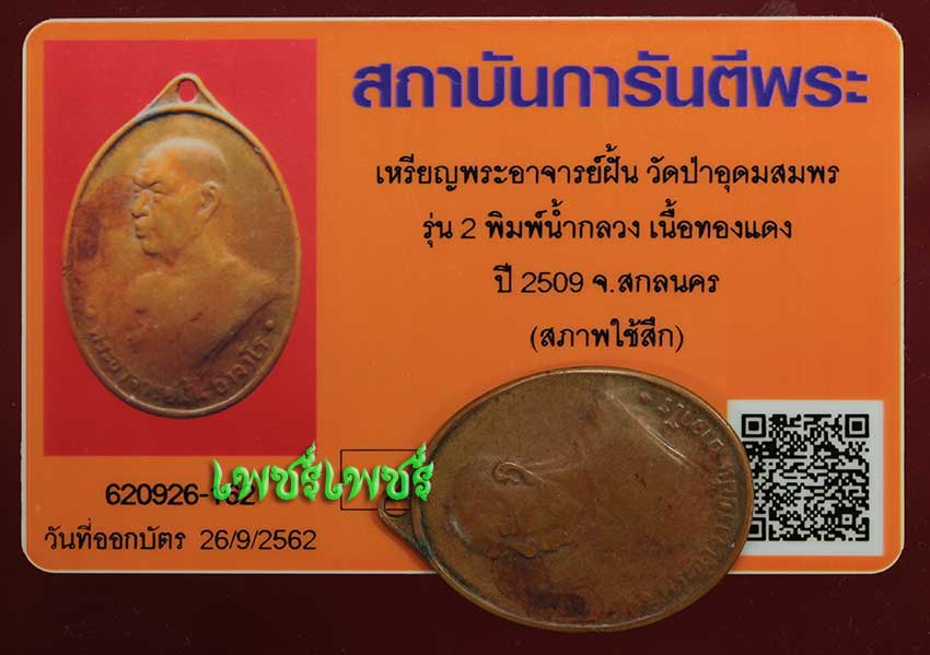 เหรียญ พระอาจารย์ฝั้น วัดป่าอุดมสมพร รุ่น2 พิมพ์น้ำกลวง เนื้อทองแดง ปี2509 จ.สกลนคร สภาพกำลังน่าใช้ หายาก พร้อมบัตรรับรองพระแท้จากการันตีพระสบายใจได้พระแท้แน่นอน ค่ะ