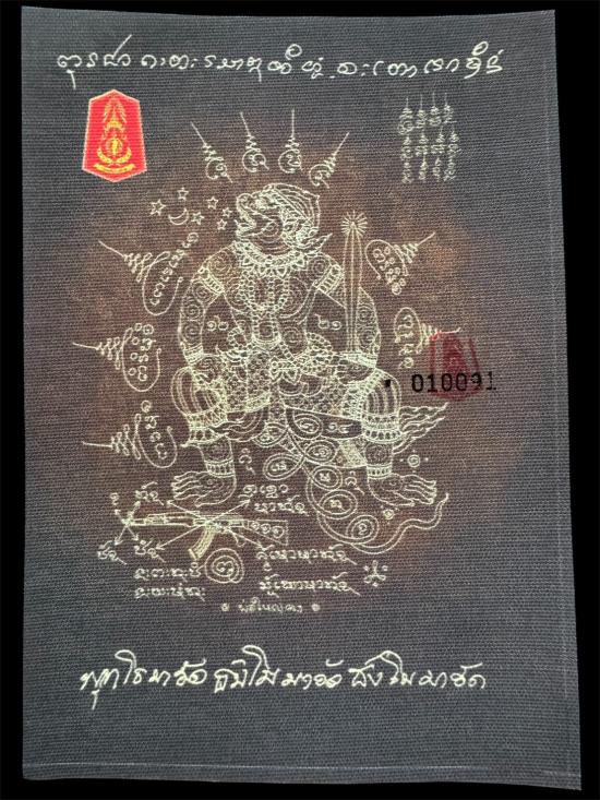 เคาะเดียว 200 ผ้ายันต์พหูรมานสีดำ no.010091 แม่ทัพภาคที่2.ทำแจกทหารชายแดนรอบที่2.หลวงปู่เมตตาอฐิฐานจิตเสกเดี่ยวอย่างเข้มขลัง(ผ้าแคนวาสสกรีนตรากองทัพภาคที่2)รันเลขนัมเบอร์พร้อมประทับหมึกเเดงตรากองทัพ |