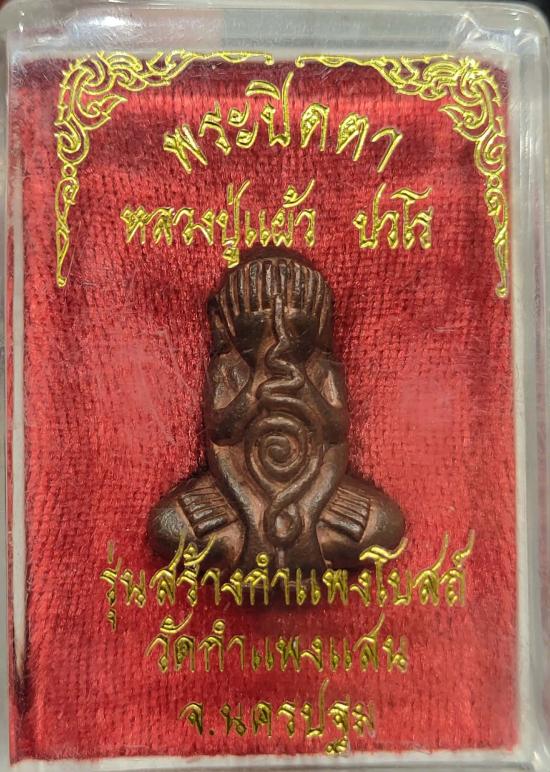 พระปิดตาสร้างกำแพงโบสถ์ เนื้อทองแดงเถื่อน พิมพ์ใหญ่ปี 2547 หลวงปู่แผ้ว ปวโร |