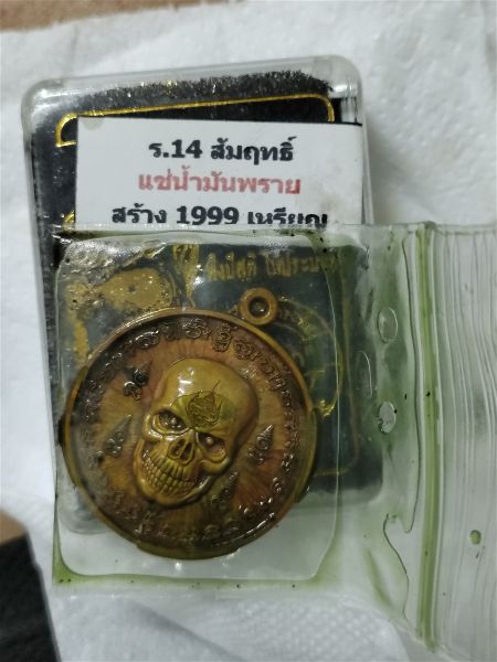 เหรียญพรายกระซิบ เนื้อสัมฤทธิ์แช่น้ำมันพราย