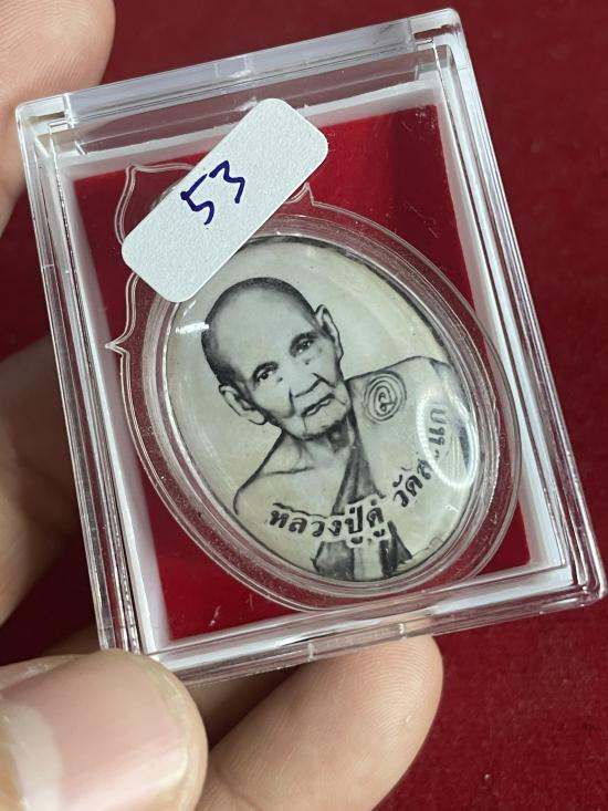 ชื่อพระเครื่อง หลวงปู่ดู่ วัดสะแก ฉากขาว ซีเปีย พิมพ์รูปไข่ หลังยันต์ เนื้อตะกั่ว ปี 53 พร้อมเลี่ยม
