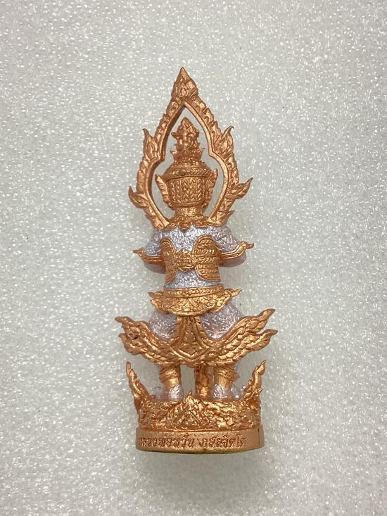 ชื่อพระเครื่อง เคาะเดียวแดง 150 ท้าวเวสสุวรรณ รุ่นคลังสมบัติ รุ่น2 หลวงพ่อหวั่น วัดคลองคูณ จ.พิจิตร สูง 6.5 ซ.ม. เนื้อทองแดง เพ้นท์สีบรอนซ์เงิน กล่องเดิม