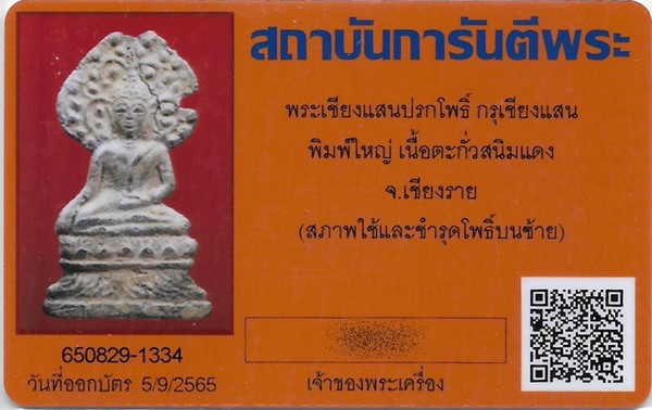 พระเชียงแสนปรกโพธิ์ พิมพ์ใหญ่ บัวรวน เนื้อตะกั่วสนิมแดง พร้อมบัตรฯ