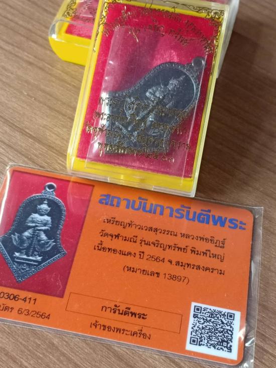 เหรียญท้าวเวสสุวรรณ หลวงพ่ออิฏฐ์ วัดจุฬามณี รุ่นเจริญทรัพย์พิมพ์ใหญ่ เนื้อทองแดง ๒๕๖๓ จ.สมุทรสงคราม (หมายเลข ๑๘๓๙๗ )มีบัตรครับ