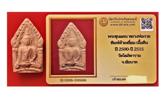 พระขุนแผน หลวงพ่อกวย พิมพ์ห้าเหลี่ยม หลังยันต์ เนื้อดิน ยุคต้น สวย ดูง่าย ปี 2500-ปี 2515 วัดโฆสิตาราม + บัตรรับรอง