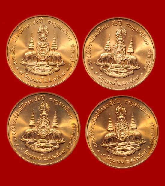 รายละเอียด เหรียญรัชกาลที่ 9 ปี 2539 ครองราชย์ 50 ปี 4 องค์ เนื้อทองแดง สวยๆ