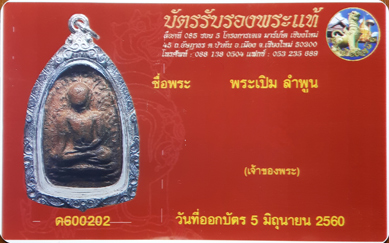 พระเปิมแดง ลำพูน สีหายาก สภาพสมบูรณ์ มาพร้อมบัตรจากสายตรงครับ
