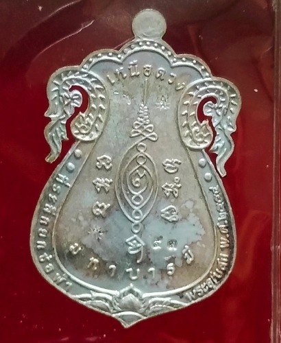 เหรียญเสมาเงินลงยา หลวงปู่แผ้ว วัดรางหมัน พร้อมกล่อง รุ่นเหนือดวงมหาบารมี เลข 53