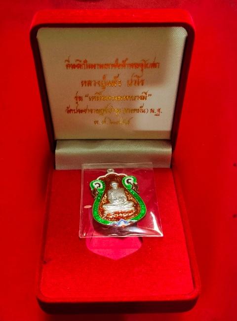 รายละเอียด เหรียญเสมาเงินลงยา หลวงปู่แผ้ว วัดรางหมัน พร้อมกล่อง เคาะเดียว ราคาทุน