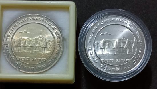 เหรียญ100บ.เงิน รัชกาลที่ 5 รัชกาลที่ 9 (100ปีกระทรวงการคลัง )รวม2เหรียญ