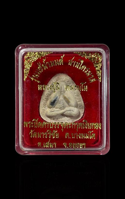 พระปิดตารุ่น แช่น้ำมนต์ 3 ไตรมาส ปลุกเสกโดย หลวงพ่อมี วัดมารวิชัย ใน ปี พ.ศ. 2539