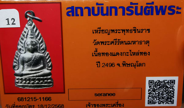 เหรียญพระพุทธชินราช วัดพระศรีรัตนฯ เนื้อทองแดงกะไหล่ทอง ห่วงเดิม ปี2496 จ.พิษณุโลก + บัตร G-pra สภาพสวยเดิมค่ะ |
