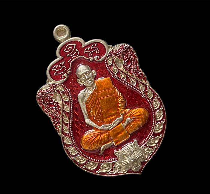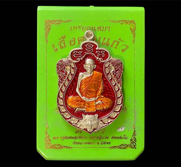 เหรียญเสมา"เสือคาบแก้ว ที่ระลึกอายุครบ 8 รอบ" หลวงปู่นวล อัคคธัมโม วัดหนองจอก จ.พิจิตร เนื้ออัลปาก้าลงยาพื้นแดงจีวรเหลือง โค๊ต # 100 เคาะเดียวครับ
