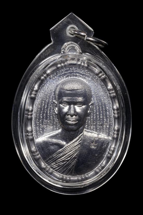 (เคาะแดง4900) +บัตรสมาคม เหรียญจารเต็ม พระอาจารย์เด่นดวง เนื้อเหล็กเปียก