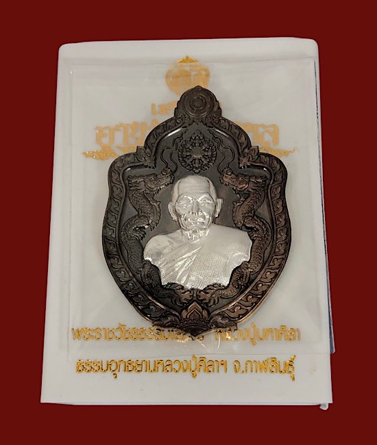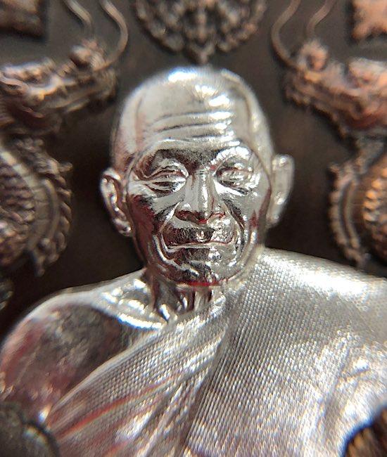 หลวงปู่มหาศิลา อายุวัฒนะมงคล81 มังกรคู่ เนื้อนวะหน้ากากเงิน จมูก100 เลข606กล่องเดิม สภาพคัดสวยๆ