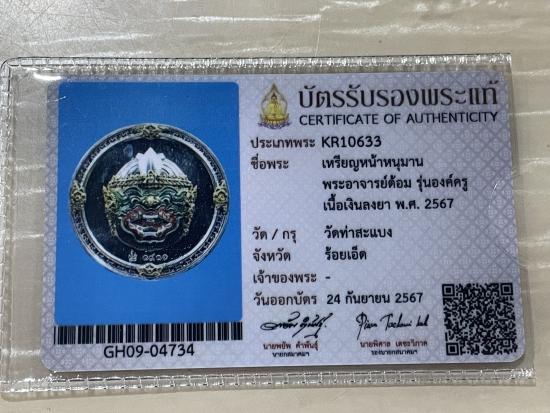(เคาะแดง19000) +บัตรสมาคม เหรียญกลมหนุมาน พระอาจารย์ต้อม เนื้อเงินลงยา