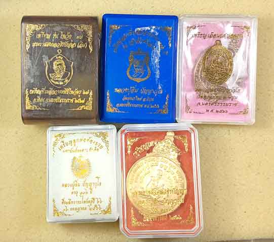 เหรียญ หลวงปู่อิ่ม วัดทุ่งนาใหม่ กล่องเดิม 5 เหรียญ |