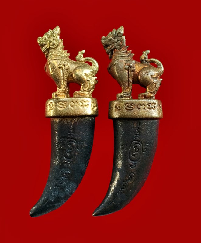 +!!เคาะเดียวllดง ตลอดสาย!!+ (รับ 2 อัน) เขี้ยวสัมฤทธิ์สิงห์มหาโชค มหาเศรษฐี ท่านเจ้าคุณธงชัย วัดไตรมิตร ปี2559 ขนาดสูง 2 นิ้ว ตอกโค้ดและเลขตามรูปครับ พร้อมเลี่ยมเดิมครับ