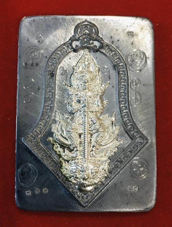 ท้าวเวสสุวรณ รุ่นโชคดี หลวงปู่บุญมา วัดเขาแก้วทอง ปราจีนบุรี เนื้อตะกั่ว ไม่ตัดปีก หน้ากากเงิน มีจารหน้า-หลังเหรียญ เลขพระ 361 |