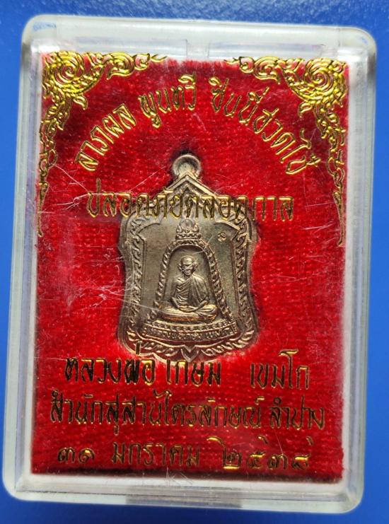 วัดใจ เหรียญหลวงพ่อเกษม เขมโก รุ่นแจกทาน เนื้ออัลปาก้า ปี 2538 เดิมๆพร้อมกล่อง