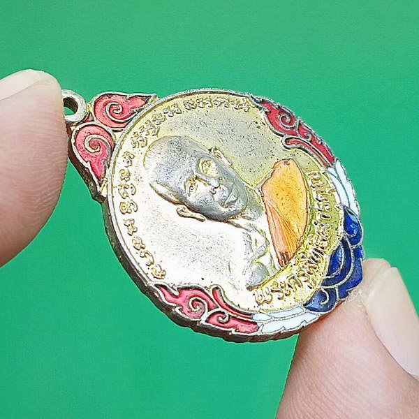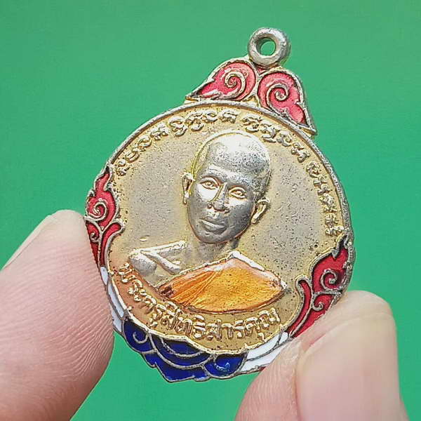 เหรียญลงยา 4 สี พระครูสิทธิสารคุณ วัดบางกระเบา จ.ปราจีนบุรี ปี 2524 ที่ระลึกฉลองสมณศักดิ์
