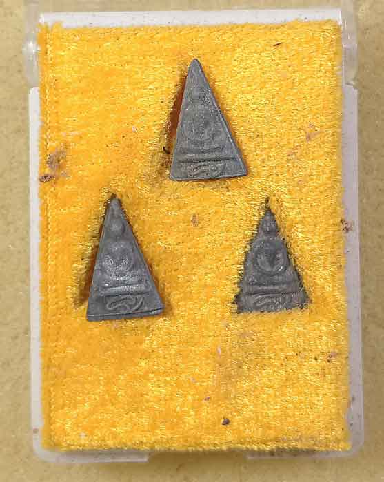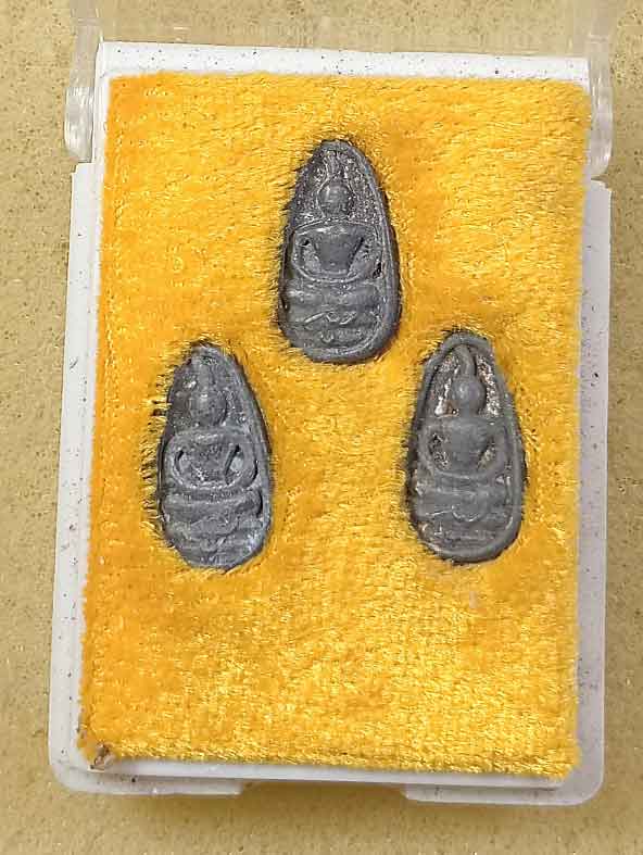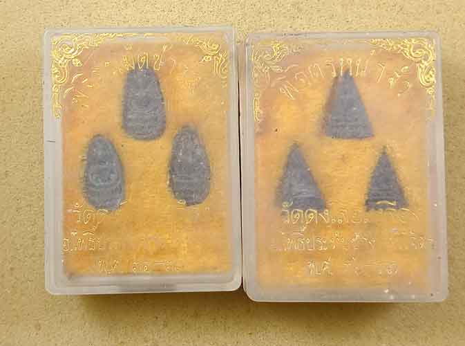 พระพิจิตรเม็ดข้าวเม่า ชุด 3 องค์ + พระจิตรหน้าจั่ว ชุด 3 องค์ วัดดงเสือเหลือง อ.โพธิประทับช้าง จ.พิจิตร ปี2536-37 กล่องเดิม