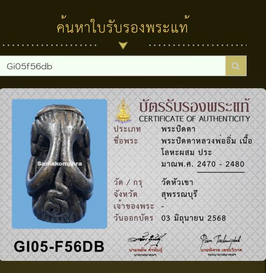 พระปิดตาหลวงพ่ออิ่ม วัดหัวเขา พร้อมบัตรรับรองสมาคม