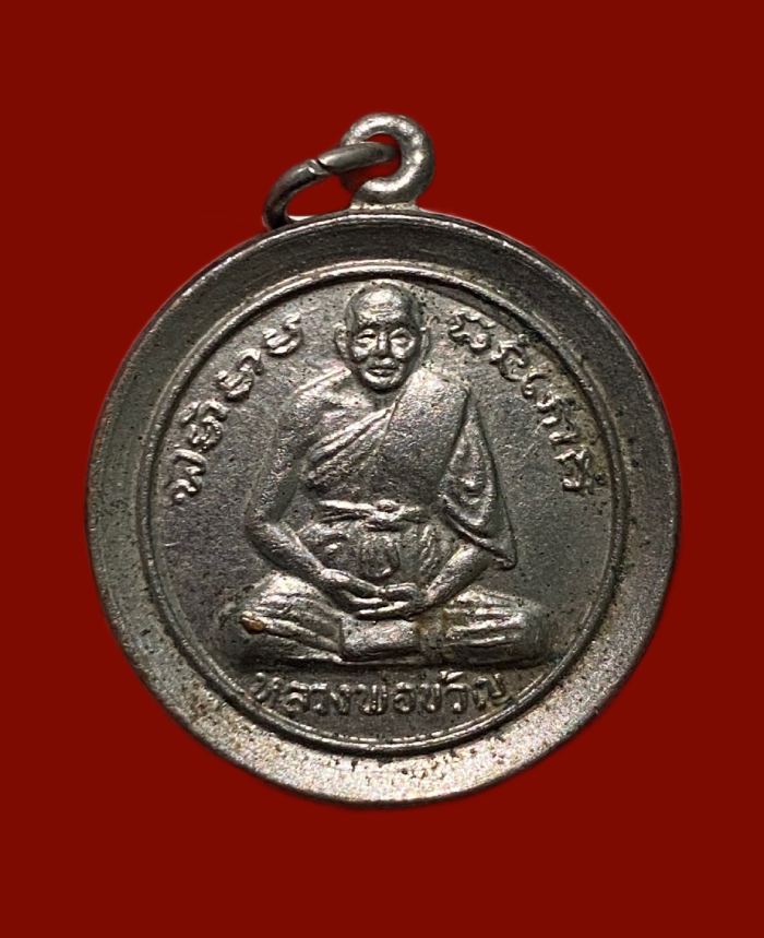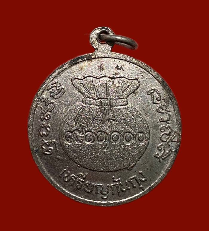 เหรียญก้นถุง หลวงพ่อขวัญ วัดบ้านไร่ (พระครูพิมลธรรมานุศิษฐ์) จ.พิจิตร เนื้อกะไหล่เงิน สวย ปี 2536