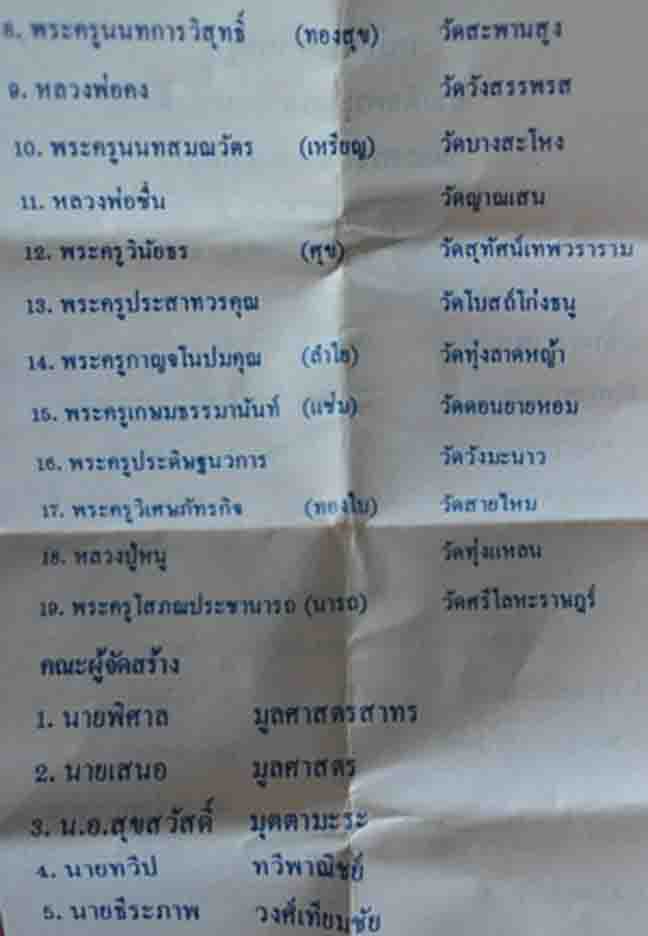 ประกอบพิธีพุทธาภิเษกพิธีครั้งที่สอง ณ วัดสุทัศน์ กรุงเทพ มีรายนามพระเถราจารย์เข้าร่วมพิธีดังนี้