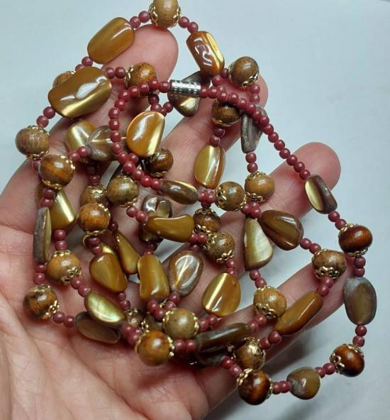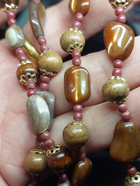 ***วัดใจ**สร้อยคอเก่าญี่ปุ่น หินผสมลูกปัดไม้ ยาวๆ 42 นิ้ว สวยๆ