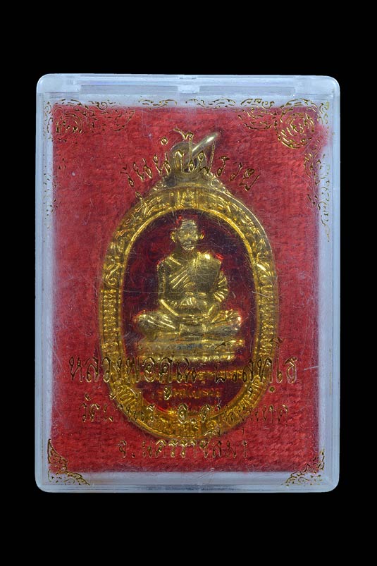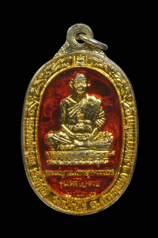 เหรียญ รุ่น นำไปรวย ( เนื้อกะไหล่ทองลงยาแดงเคลือบ ) พ.ศ.2539 ( กล่องเดิม )